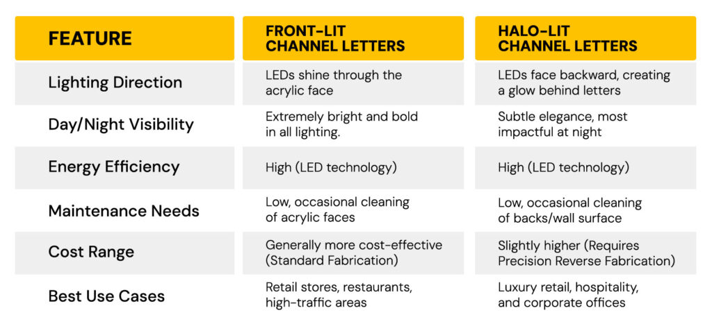 Front-Lit vs. Halo-Lit Channel Letters: Direct Comparison